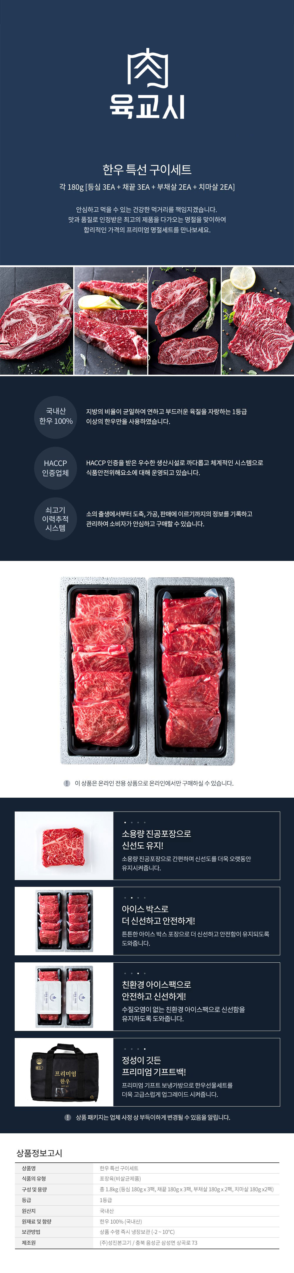 구성 - 등심 180g x3, 채끝180g x3, 부채살180g x2, 치마살180g x2